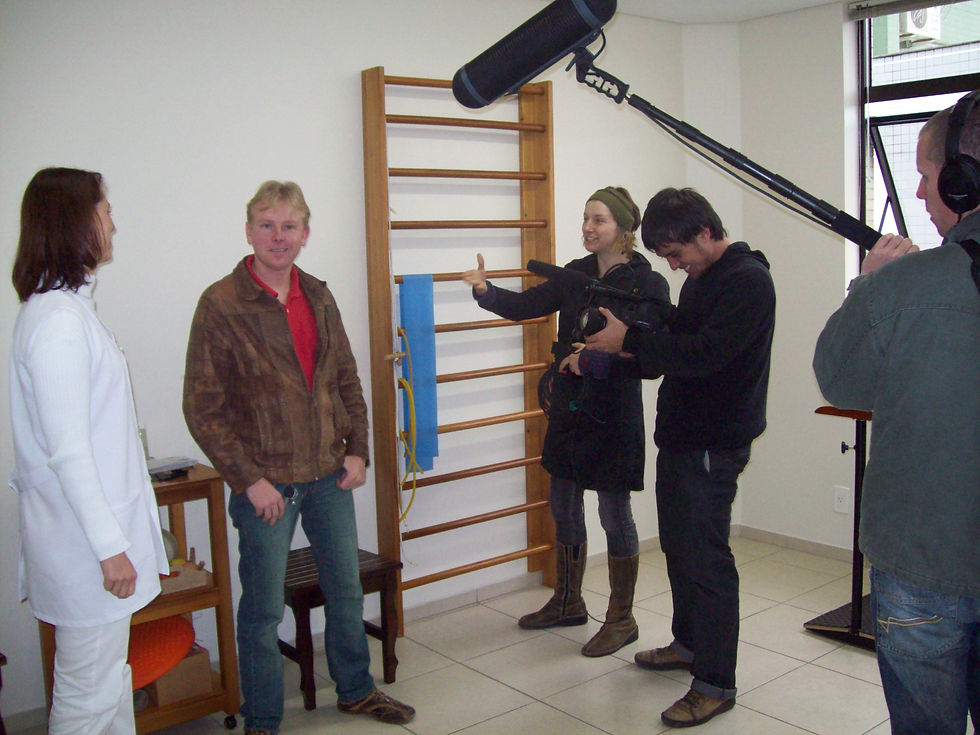 I take a phone call. The caller says he wants to make a movie about his own life because there are many similarities to two famous Brazilian country music singers. The character Dirceu Cielinski became a paraplegic when he was 17 and could walk again after a year. When we first met him, he was an accordion player and his dream was to make his living from music. The main idea is to follow his life for three years and insert the film shooting process in the documentary.